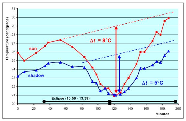 sunshine were smaller than during the total solar eclipses in 1999 and 2001